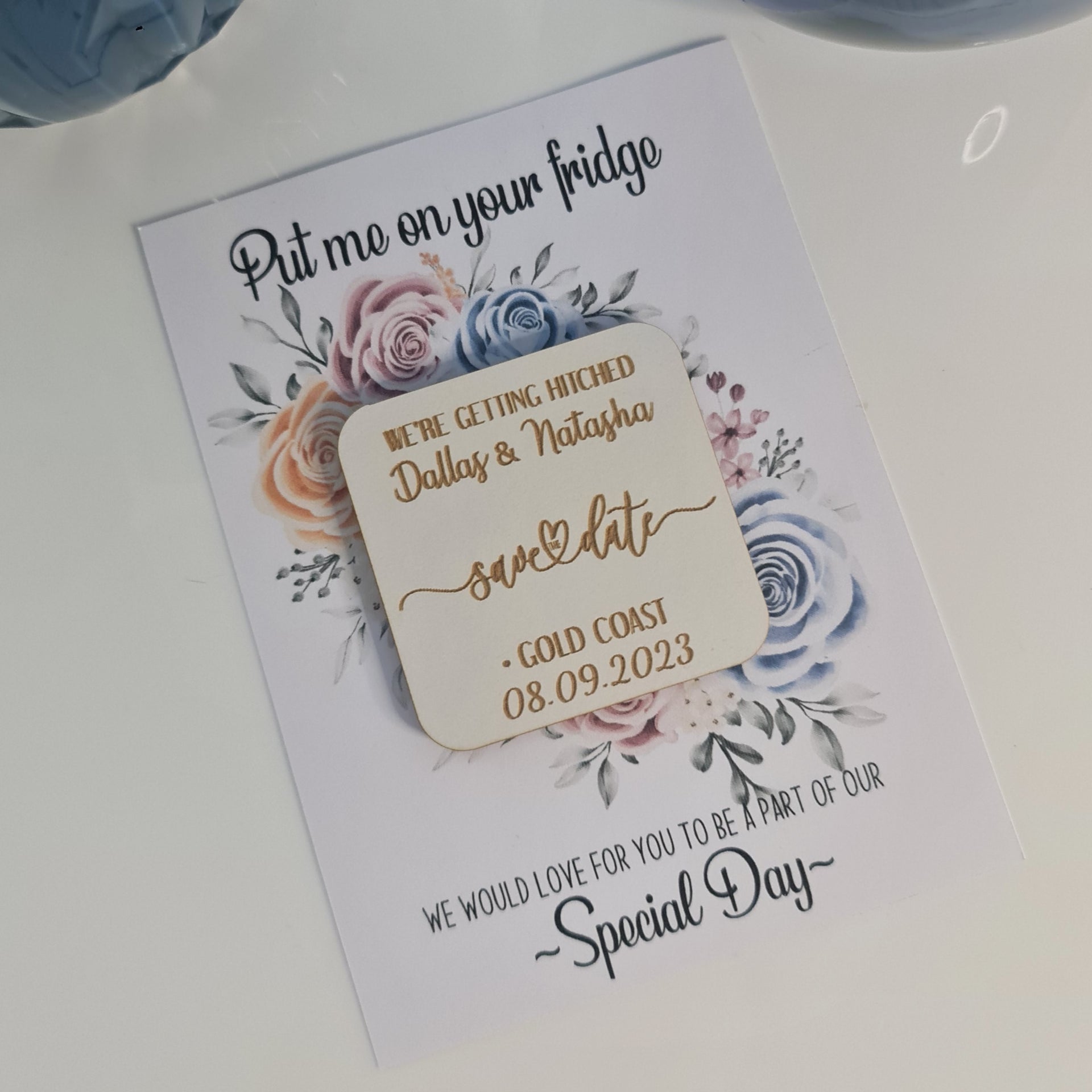 Personalised Save the Date Magnet – Timber Disk with Laser Engraving