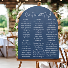 Perfect for both indoor and outdoor weddings, our acrylic seating charts are designed to withstand various weather conditions, keeping them looking pristine throughout your event. Additionally, their lightweight design makes them easy to transport and set up, offering a seamless experience on your big day.