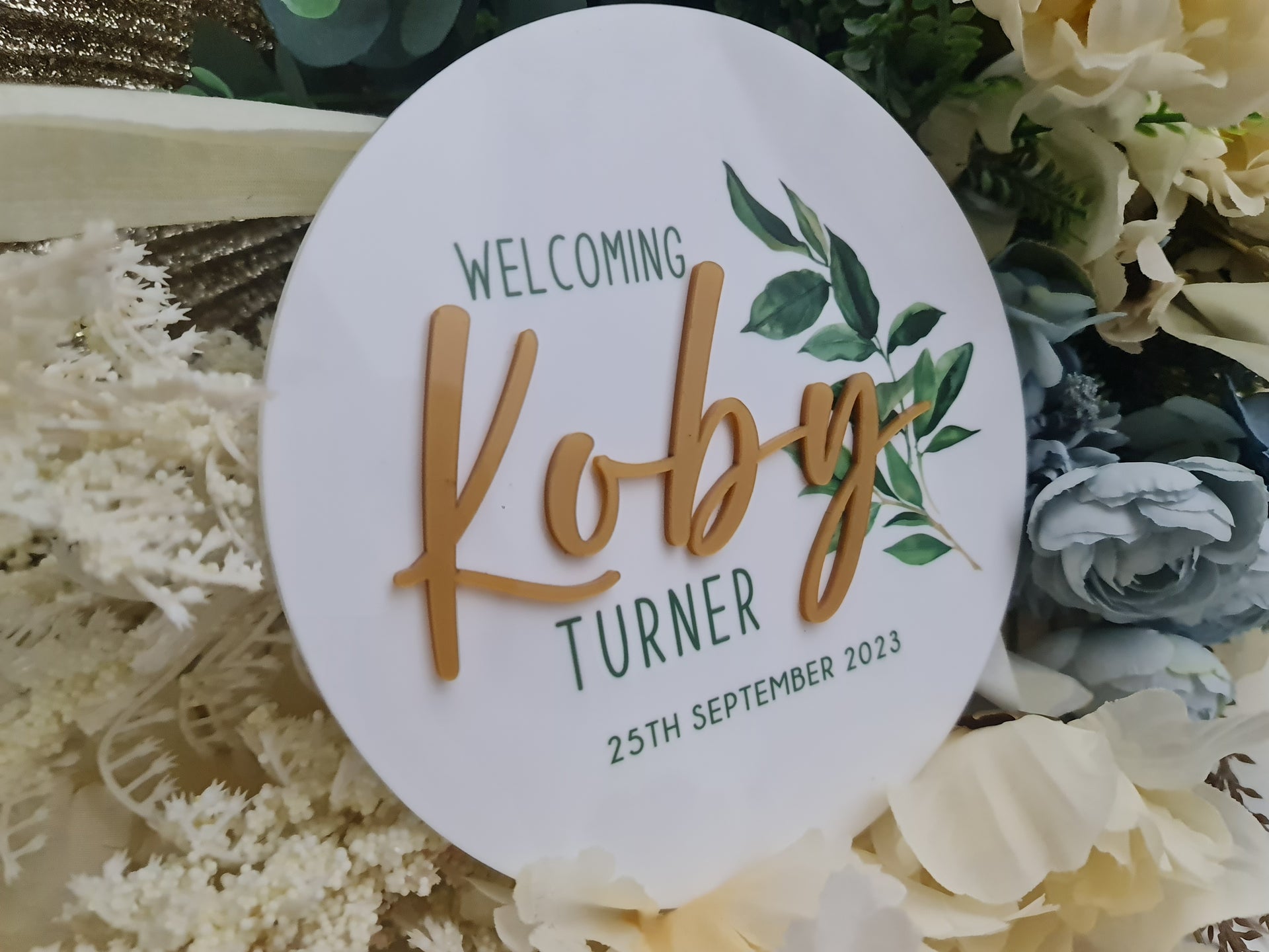 Celebrate your little one's arrival with a beautifully crafted 15cm baby announcement disc, available in UV print or laser-etched finish. The perfect way to share your baby's name, date, and special details in timeless style.