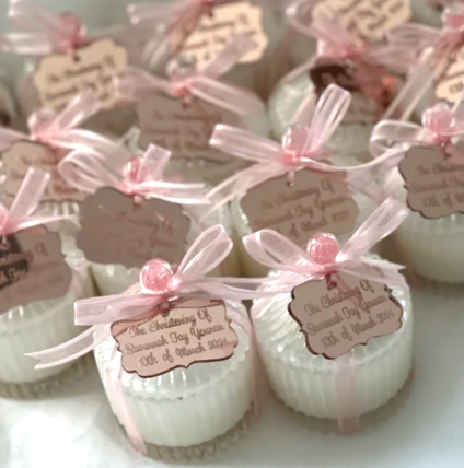 Religious Event Bonbonniere Tags – Engraved Name Tags for Candles or Gifts
