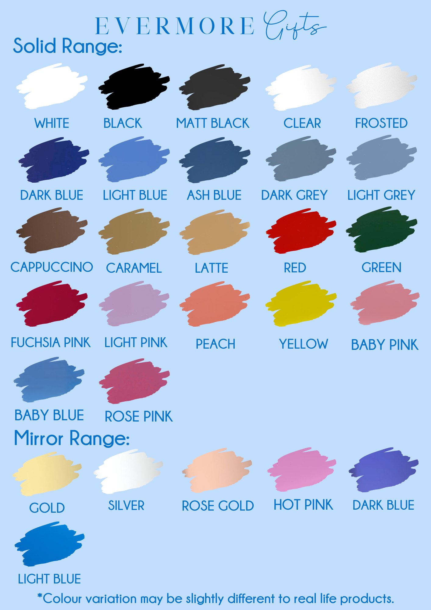 Make Mum’s Mother’s Day cake extra special with a personalised acrylic cake topper. Choose from a large selection of vibrant colours and designs, or let us work with you to create a custom topper that perfectly fits your vision. Our high-quality acrylic toppers add a unique touch to any cake, making it the centrepiece of her special day.
