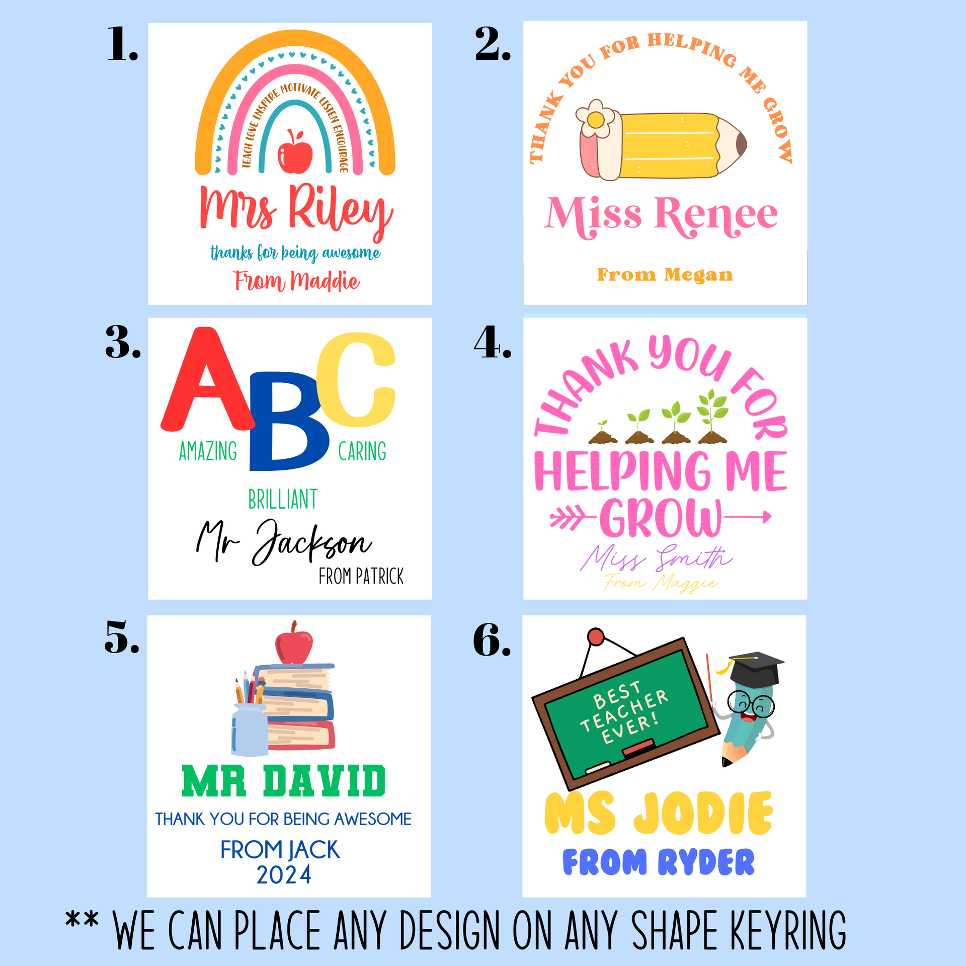 Whether it’s a simple “Best Teacher Ever” or a personalised note from a student, these keyrings are fully customisable to suit your needs. You can select from our range of designs or collaborate with our team to create something truly one-of-a-kind – at no additional cost.