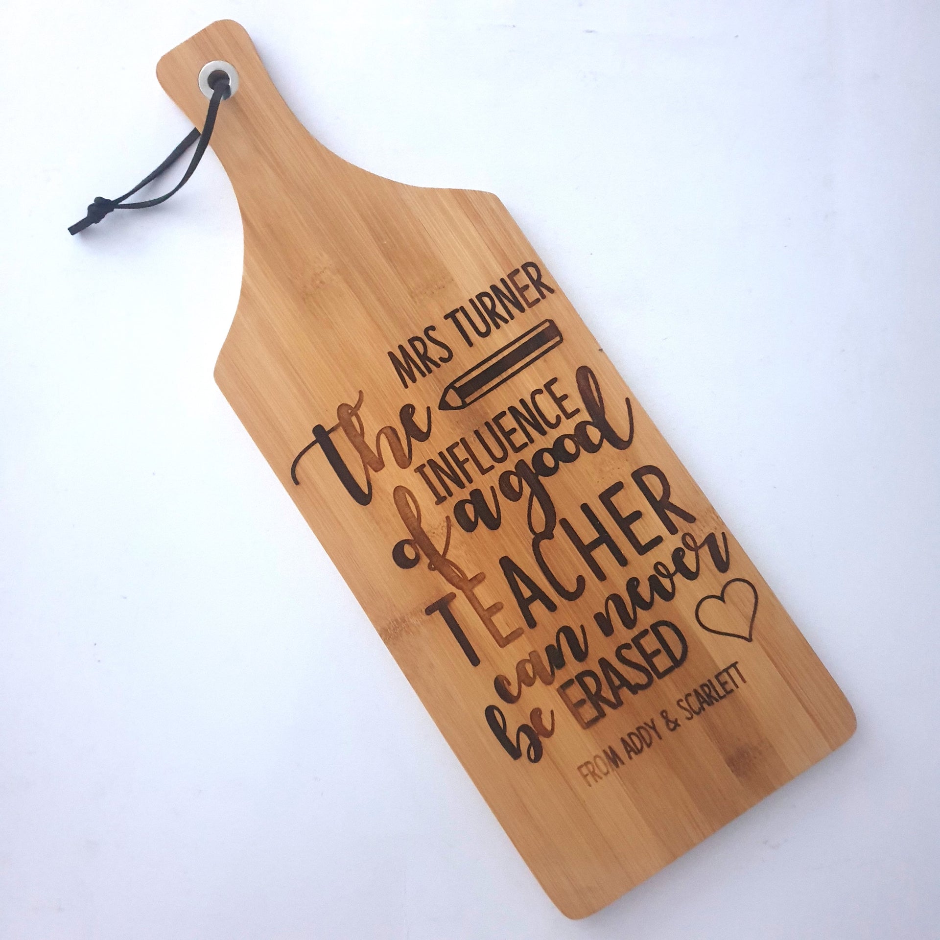 Treat your favourite teacher to something both beautiful and practical with our Personalised Laser Etched Serving Boards. Crafted from high-quality timber, each board is precision-etched with your choice of name, message, quote, or class details – creating a heartfelt keepsake they’ll be proud to display or use.